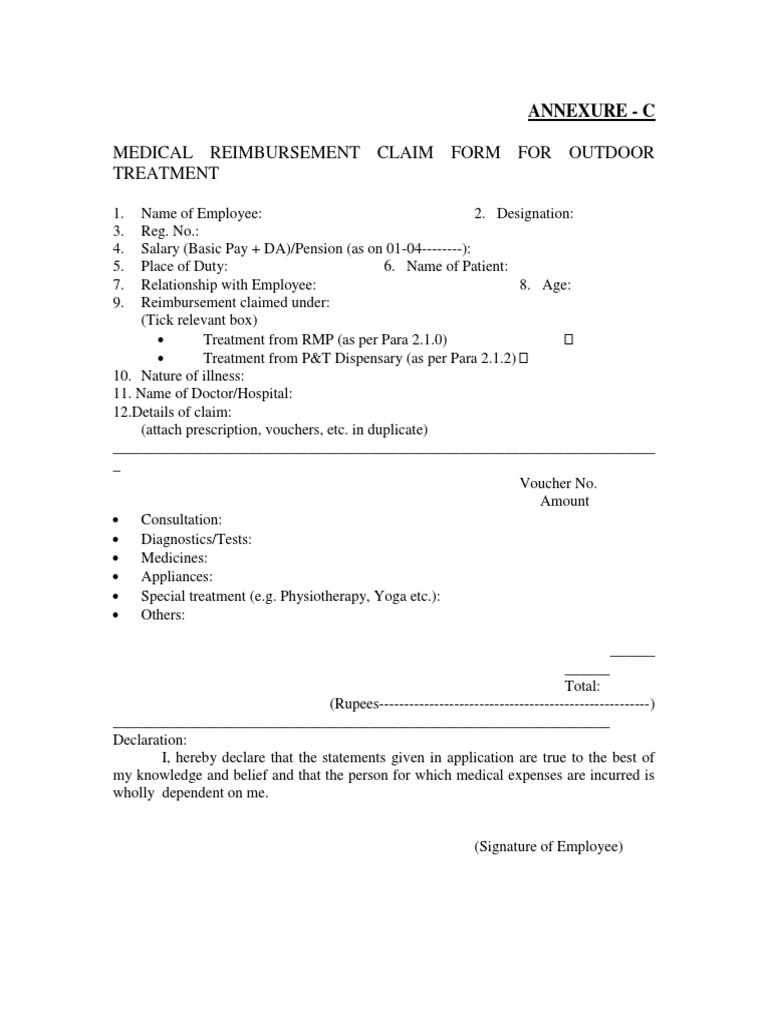 MEDICAL REIMBURSEMENT CLAIM FORM FOR OUTDOOR