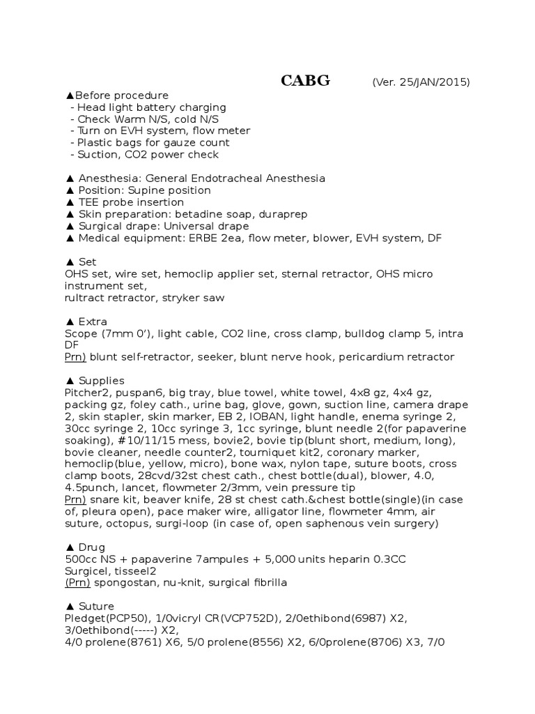 - they will use ring fcp, debakey fcp, coronary metzenbaum, hemoclip applier(mini, S, M).