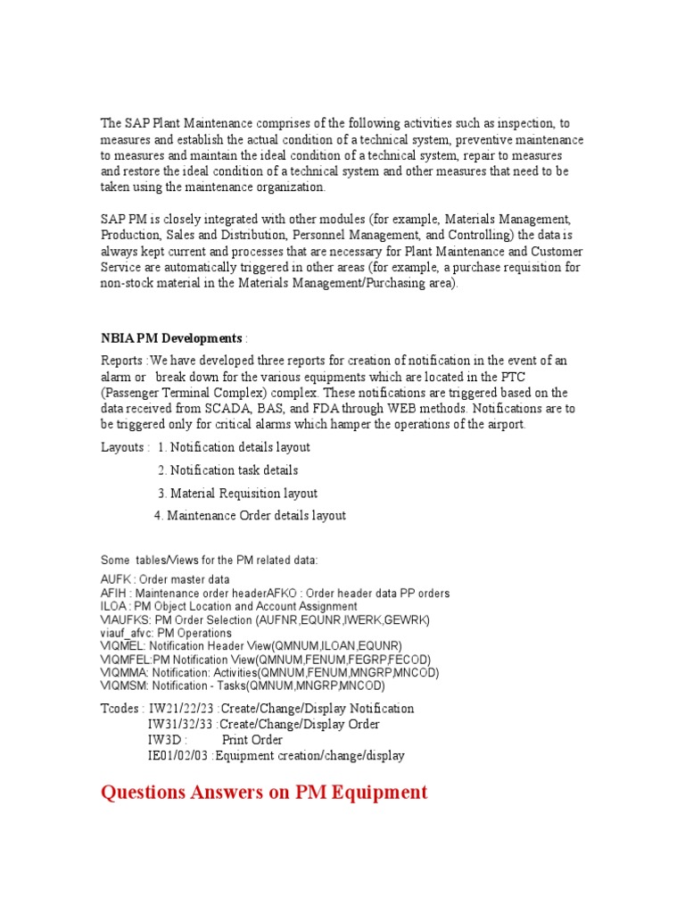 SAP PM Questions Answers on Functional
