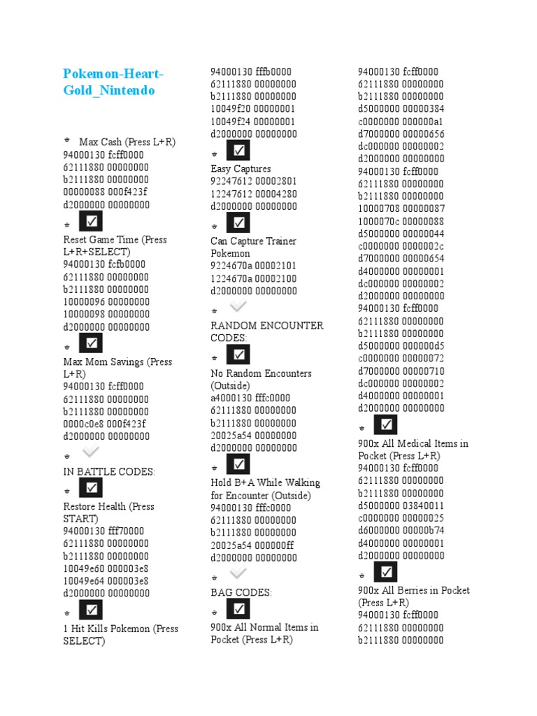 POKEGEAR CODES: