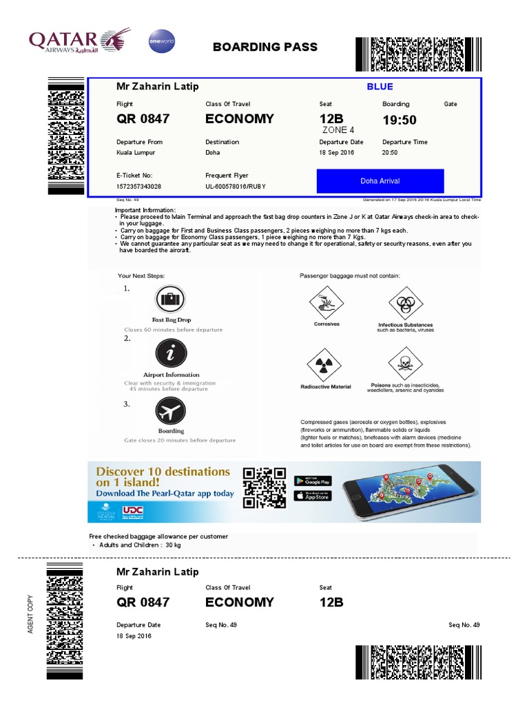 Please proceed to Main Terminal and approach the fast bag drop counters in Zone J or K at Qatar Airways check-in area to checkin your luggage.