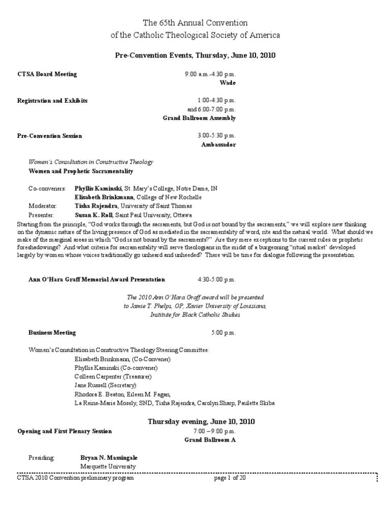 Administrative Team:Edward P. Hahnenberg, Christopher Ruddy,Catherine E. CliffordConvener:
