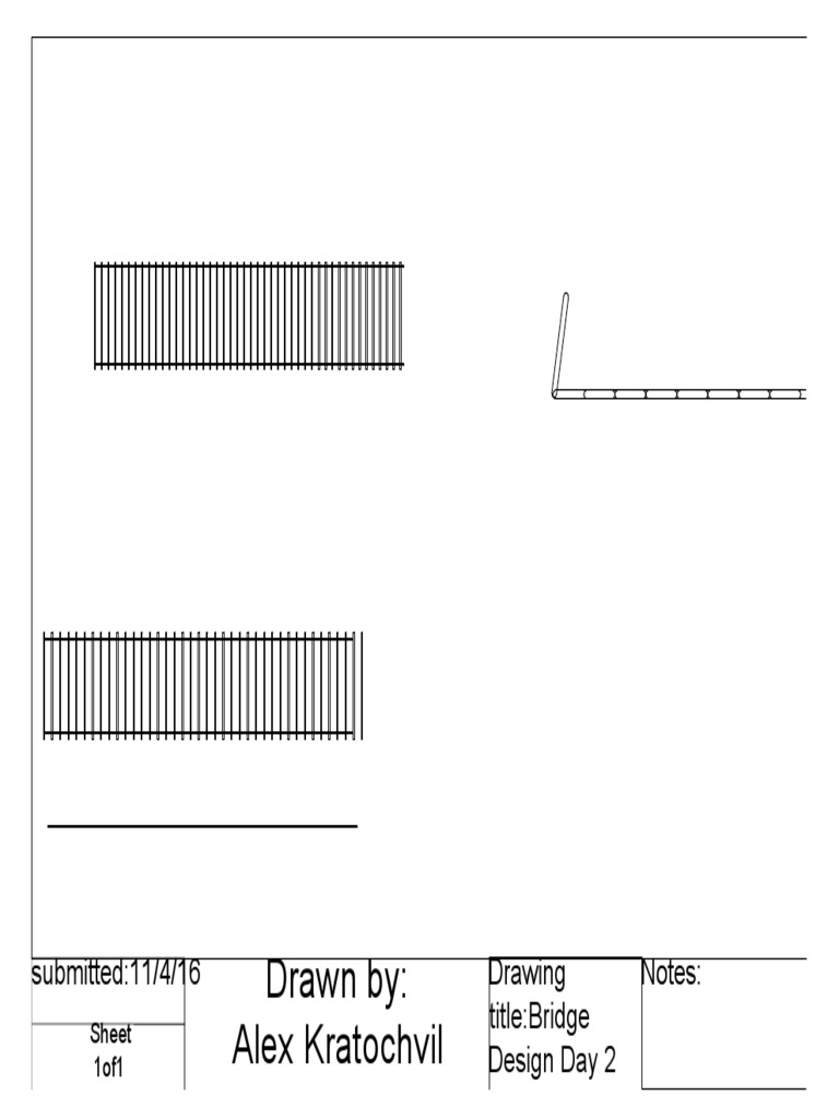 This single page document contains a drawing titled "Bridge Design Day 2" created by Alex Kratochvil on November 4th, 2016. The drawing appears to be part of a multi-day bridge design project but provides no other details about the drawing itself or notes on the design.