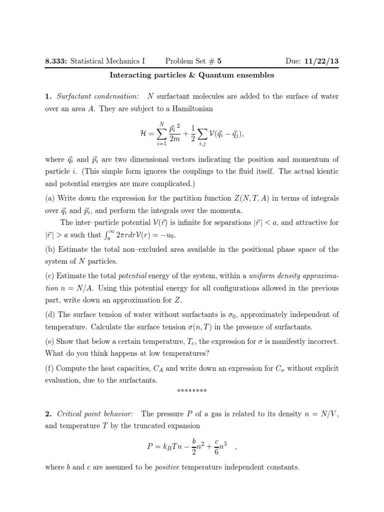 8.333 Statistical Mechanics I: Statistical Mechanics of Particles
