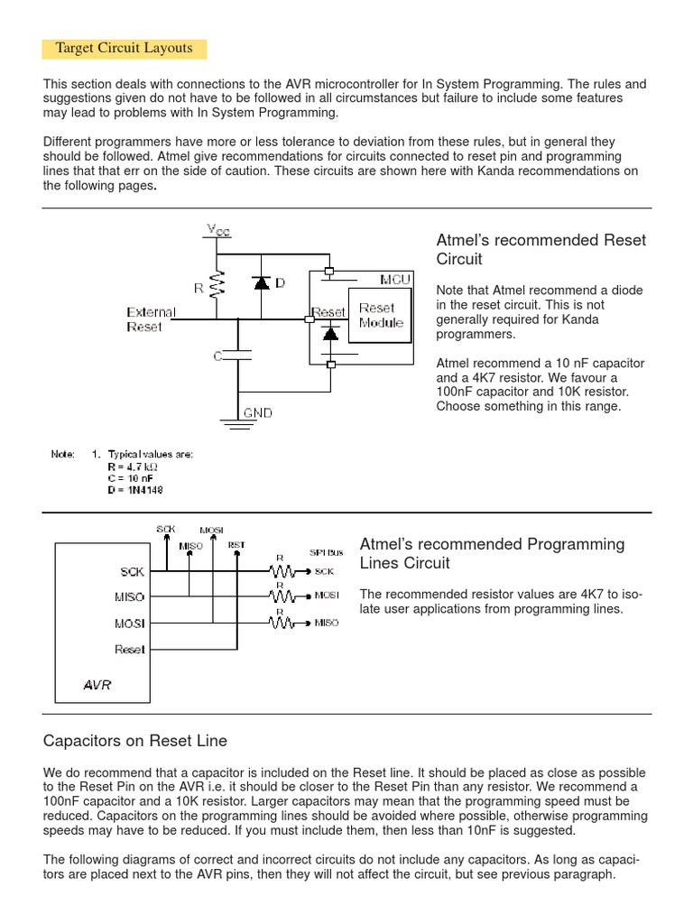 should be followed. Atmel give recommendations for circuits connected to reset pin and programming