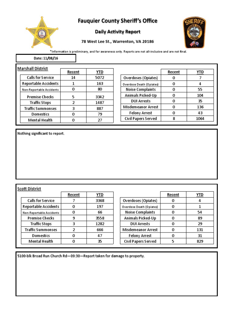 5100-blk Broad Run Church Rd09:30Report taken for damage to property.