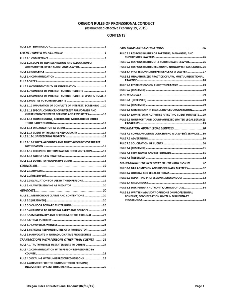 Oregon Rules of Professional Conduct (02/19/15) Page 1