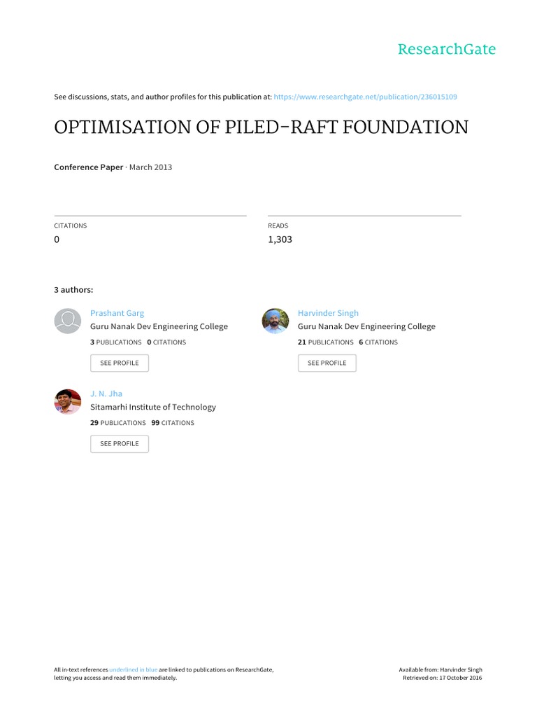 10. SINGH N. T. AND SINGH B., Interaction Analysis for Piled Rafts in Cohesive Soils,