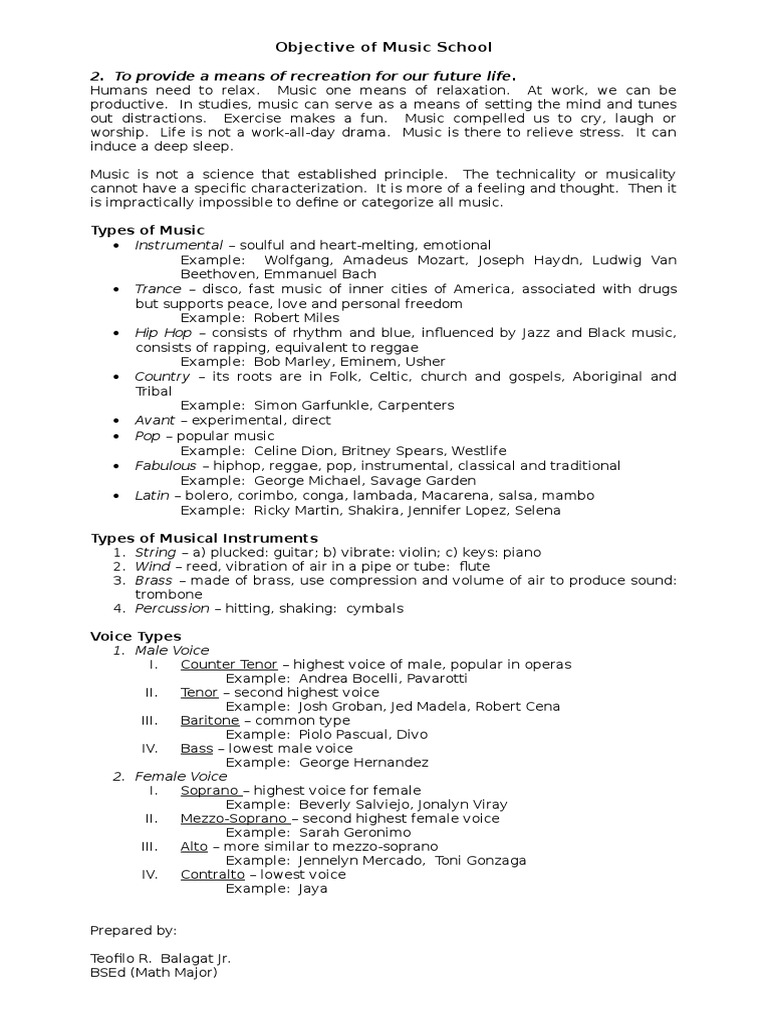 Objective of Music School