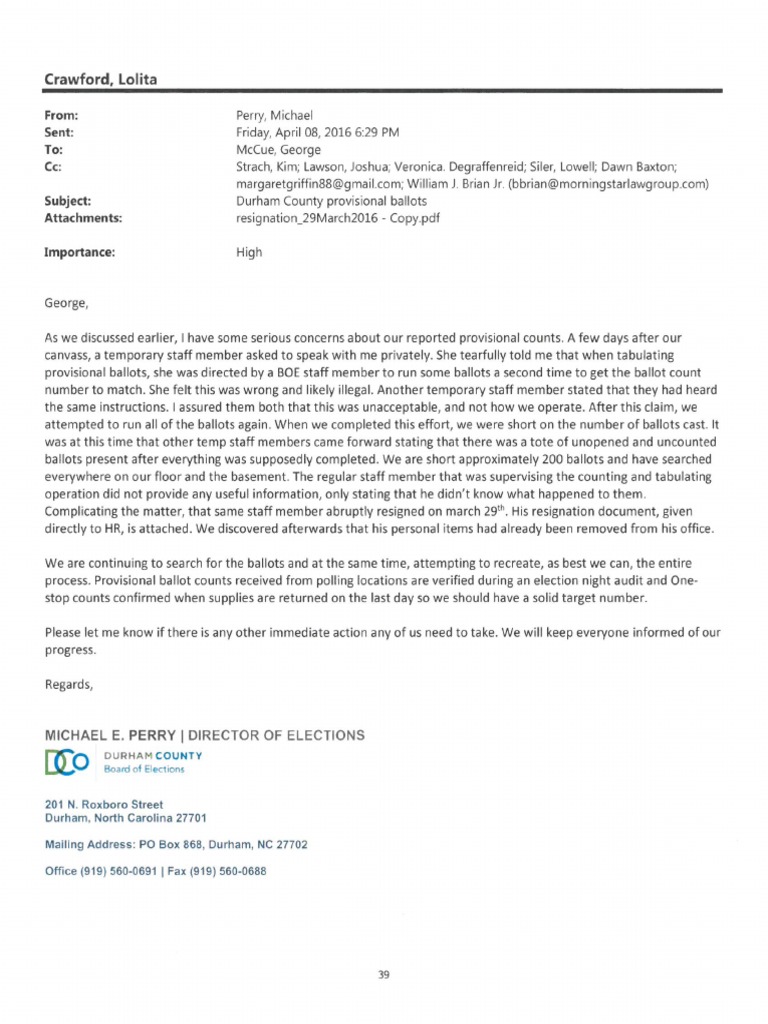 North Carolina Durham BOE Elections 2016 Provisional Ballot