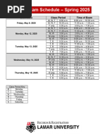day of the week the class meets. For example, a 10:00 MWF class first meets on Monday; therefore, the exam time can be