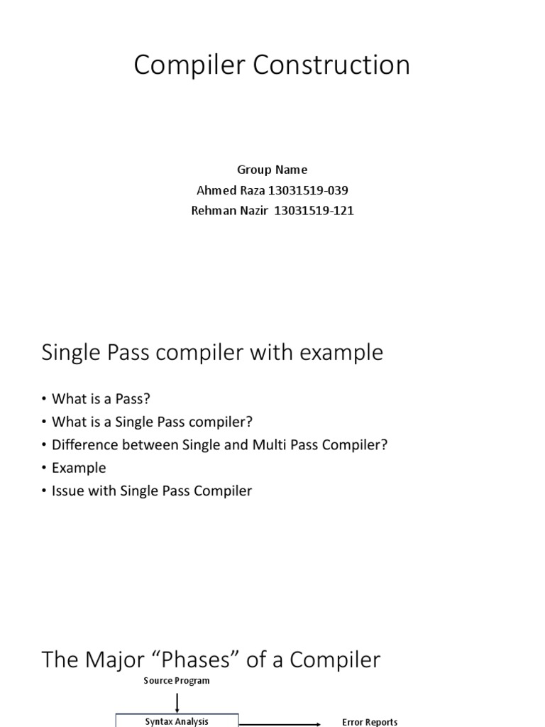 A single pass compiler makes a single pass over the source text, parsing, analyzing, and