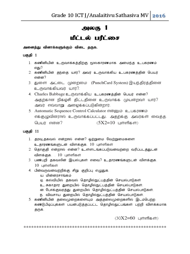 Grade 10 ICT J/Analaitivu Sathasiva MV 2016