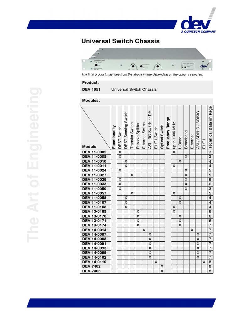 For application in the DEV 1951 the optical switch modules are to be ordered with Option 1951.