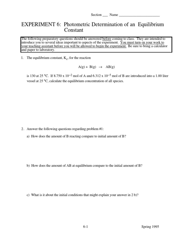 EXPERIMENT 6: Photometric Determination of an Equilibrium