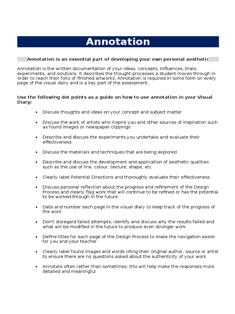 order to reach their folio of finished artworks. Annotation is required in some form on every