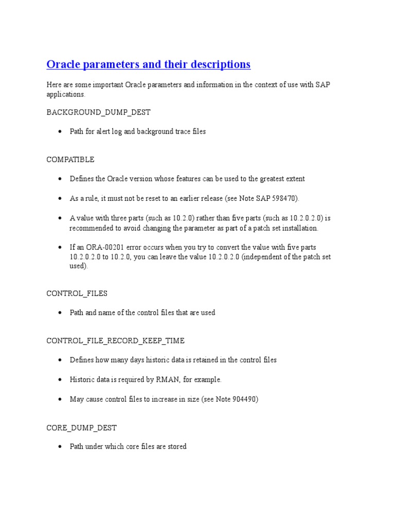 Here are some important Oracle parameters and information in the context of use with SAP
