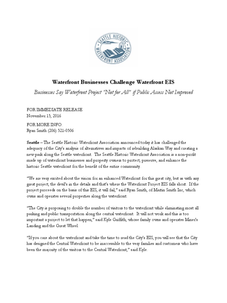 Waterfront Businesses Challenge Waterfront EIS