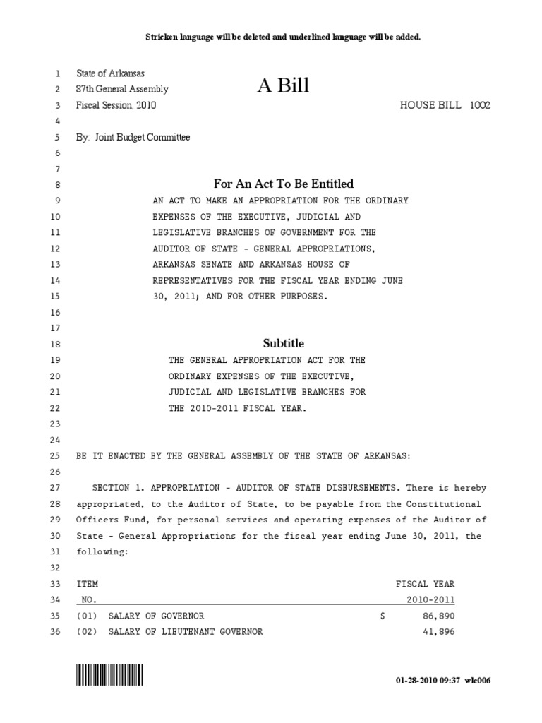 14 law of the Arkansas Senate for the fiscal year ending June 30, 2011, the