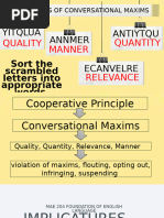 4. Maxim of Manner: Avoid obscurity of expression; Avoid ambiguity; Be brief; Be orderly.