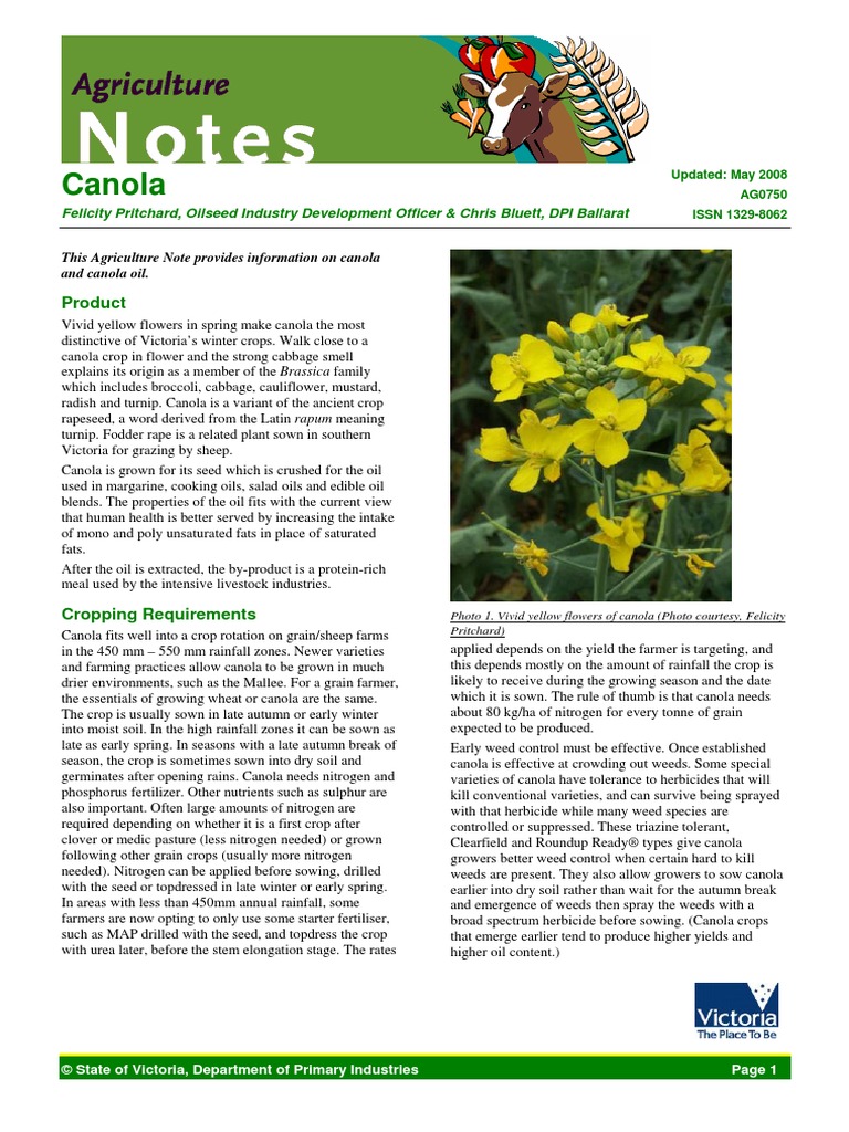 This Agriculture Note provides information on canola