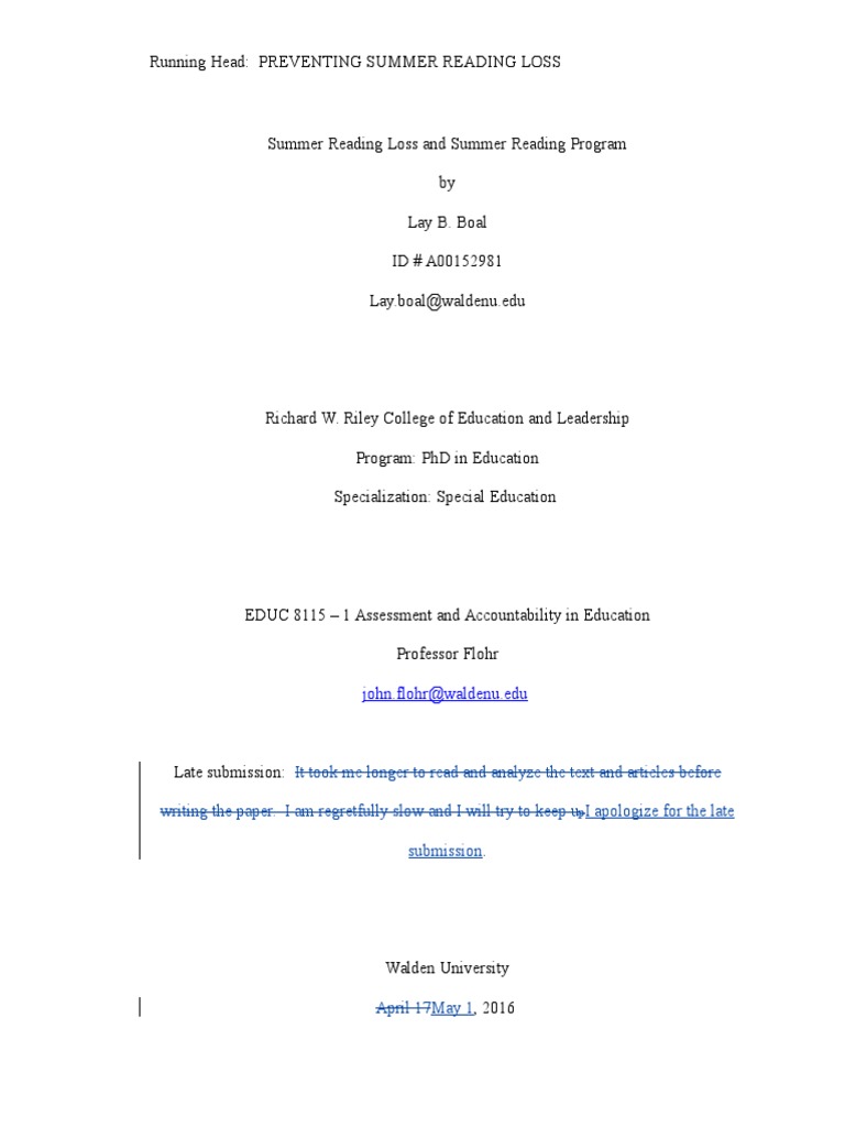 cumulative (Kim & White, 2011). The district wide special summer reading program is