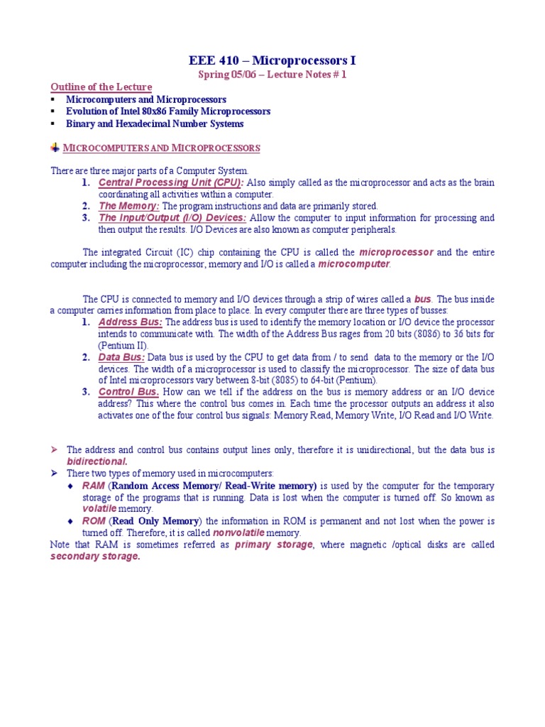 Microprocessors I Lecture Notes Overview