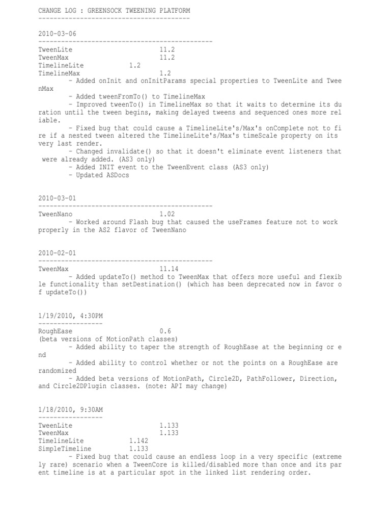CHANGE LOG : GREENSOCK TWEENING PLATFORM