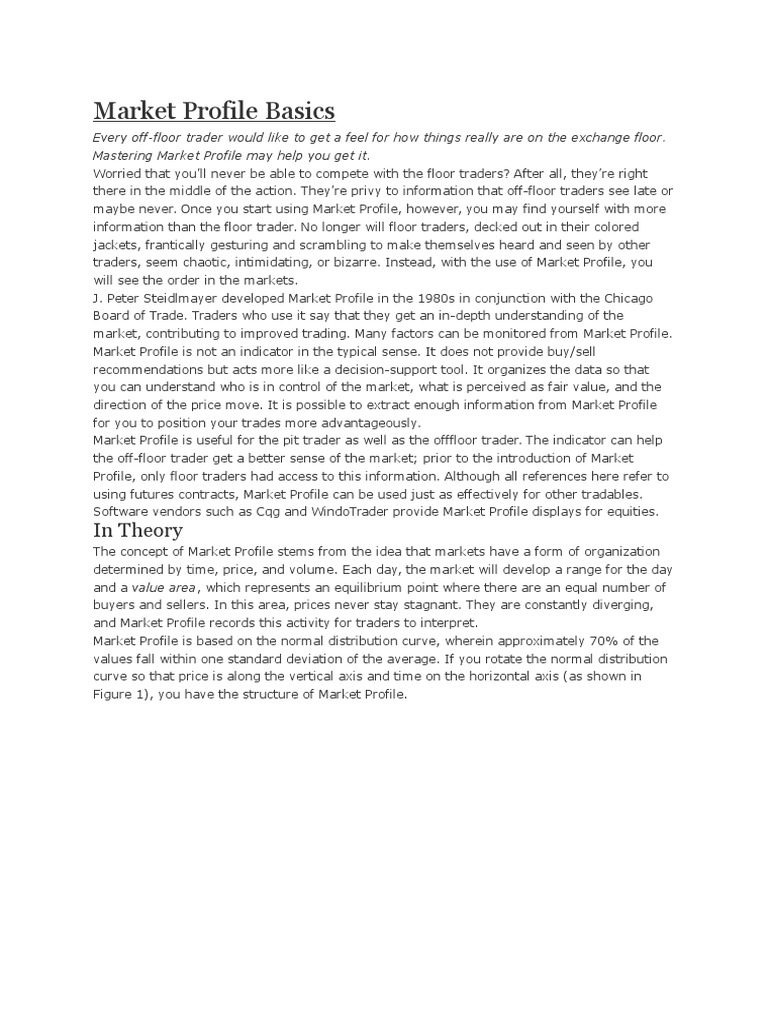 Market Profile is based on the normal distribution curve, wherein approximately 70% of the