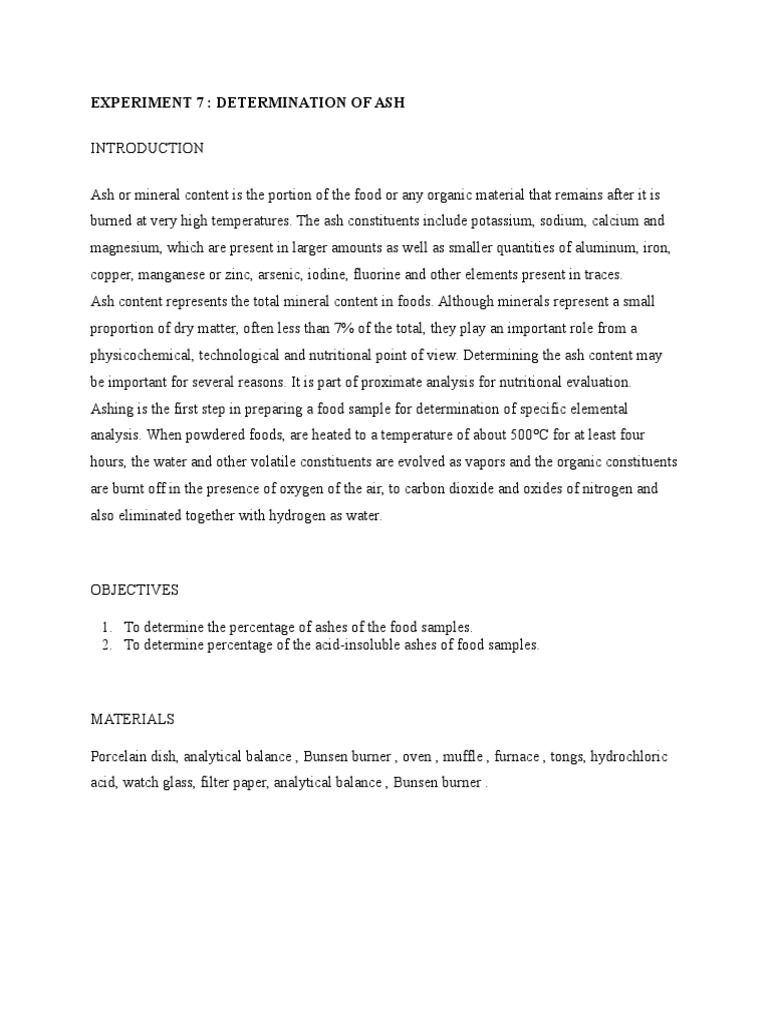Practical 7 : determination of ash