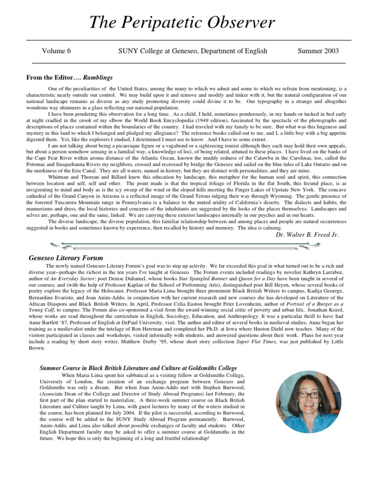 Volume 6 SUNY College at Geneseo, Department of English Summer 2003