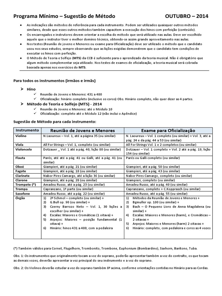 Sugesto de Mtodo para cada instrumento: