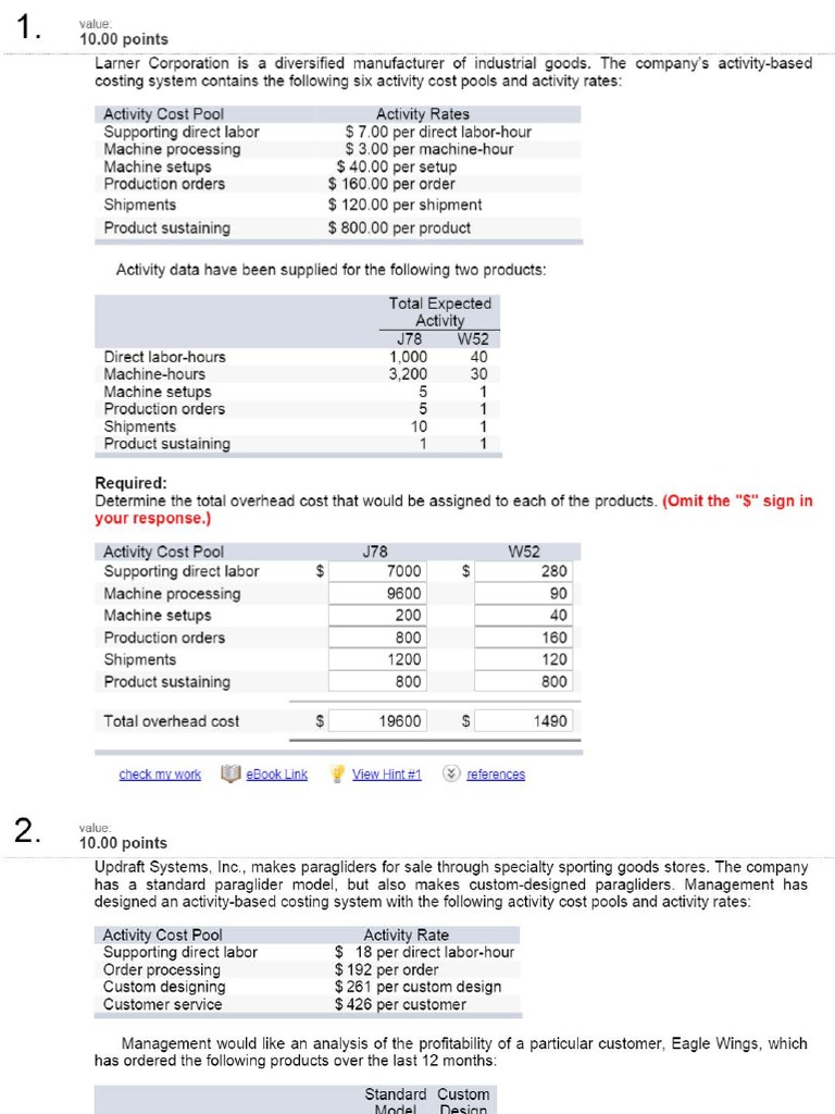 Larner Corporation is a diversified manufacturer of industrial goods. The company's activity-based