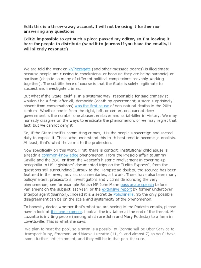 Therefore, given the sheer amount of leaked emails, and the suspected phenomenon's scale and repartition, it is likely the data dumps (Podesta and other Wikileaks, Guccifer 1/2, DNCLeaks, etc.) provide some clue to the problem. Therefore, they should be investigated thoroughly under than particular lens, and suspicions need to be corroborated with other (and previously) known facts.