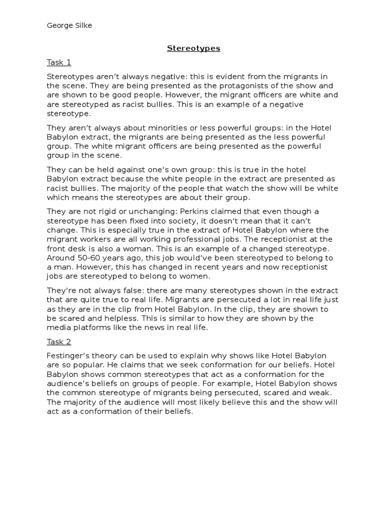 Theyre not always false: there are many stereotypes shown in the extract