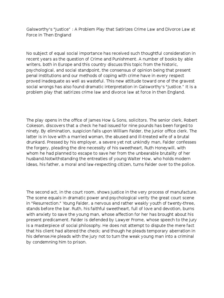 John Galsworthys Justice has a propaganda basis. While his fiction is concerned