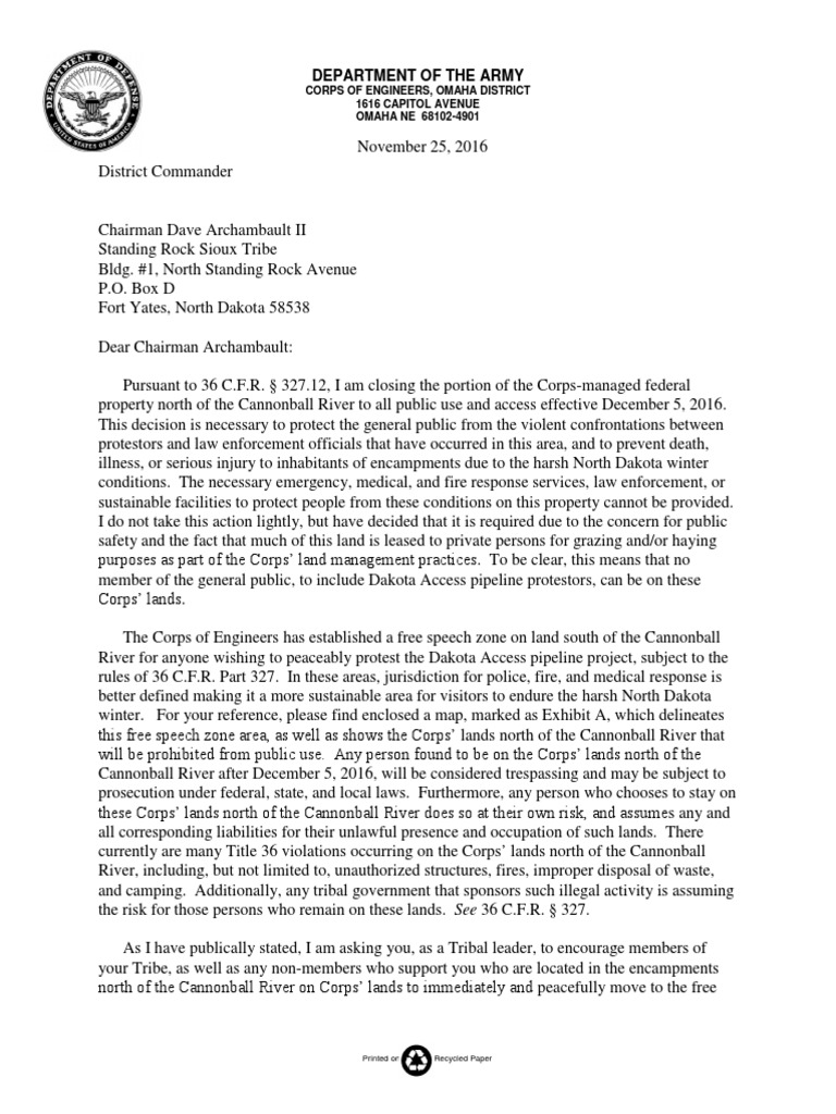 Army Corps Evicting Everyone From Standing Rock On December 5
