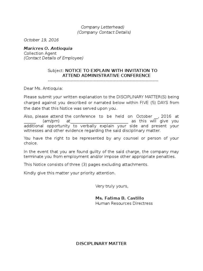 Subject: NOTICE TO EXPLAIN WITH INVITATION TO