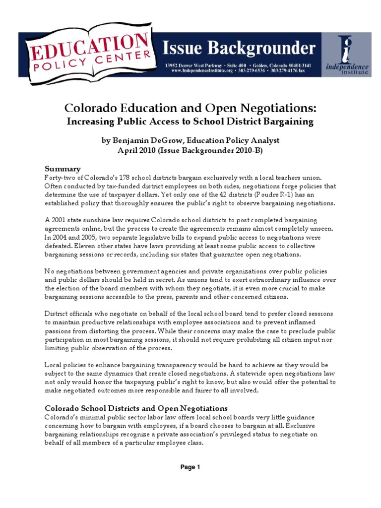 Colorado Education and Open Negotiations: Increasing Public Access To School District Bargaining