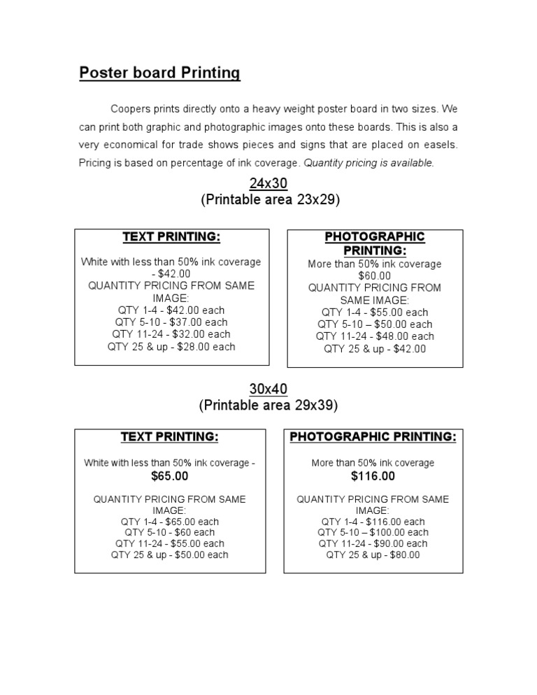 Coopers prints directly onto a heavy weight poster board in two sizes. We
