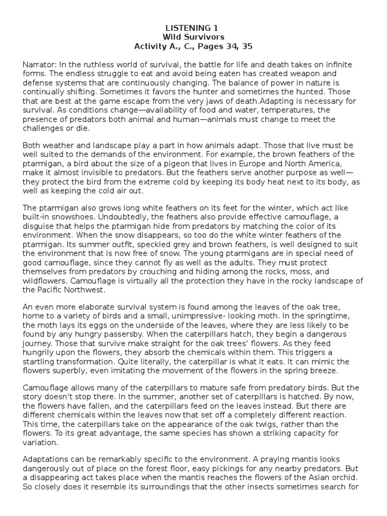 1. Adapting is necessary for survival. As conditions changeavailability of food and