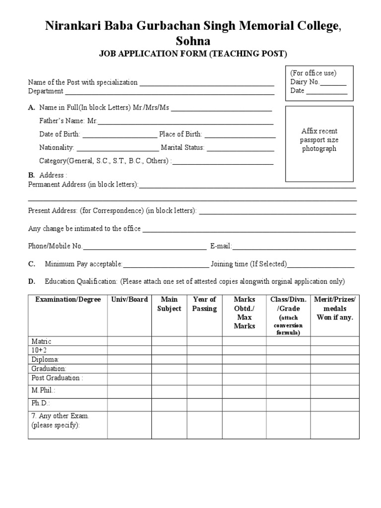 Education Qualification: (Please attach one set of attested copies alongwith orginal application only)