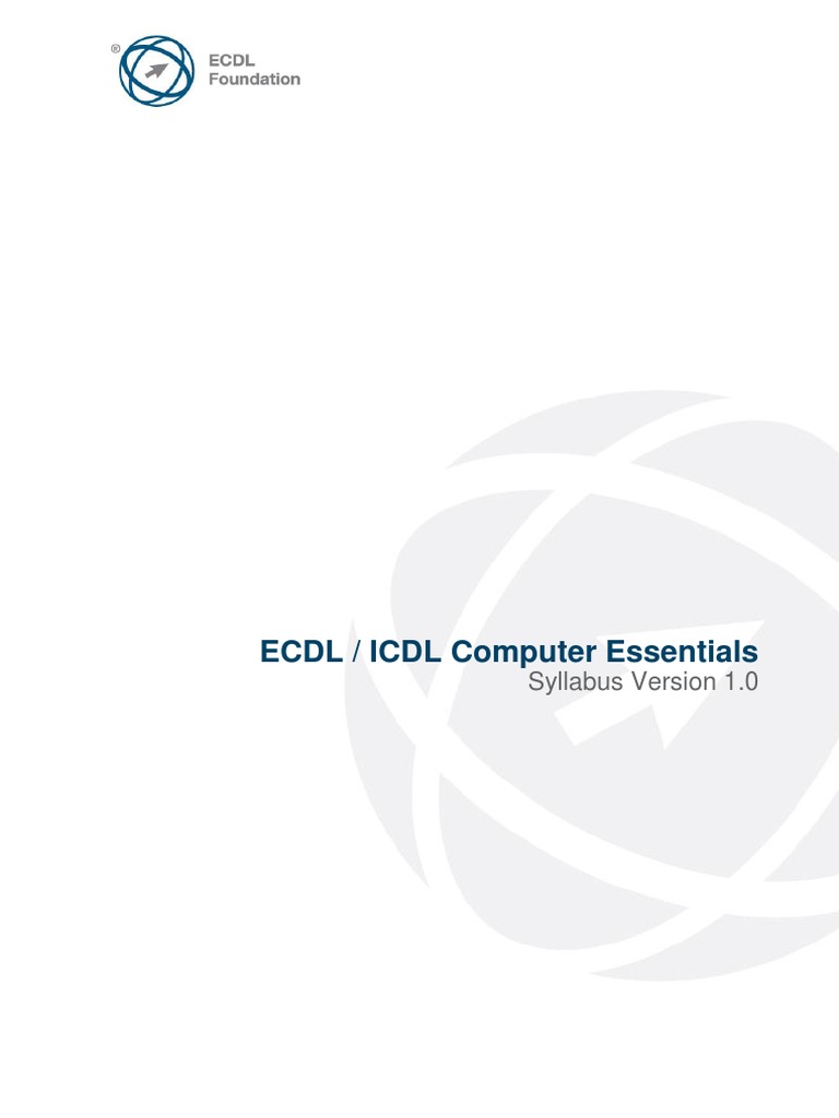 This document details the syllabus for ECDL / ICDL Computer Essentials. The