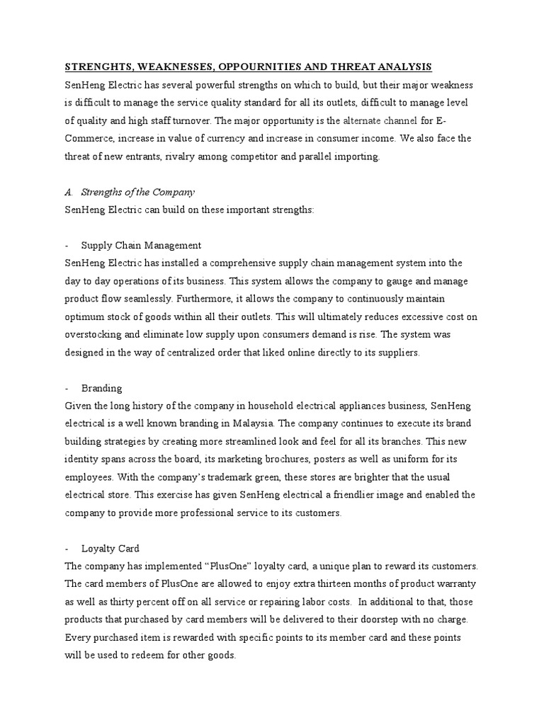 SenHeng Electric has several powerful strengths on which to build, but their major weakness
