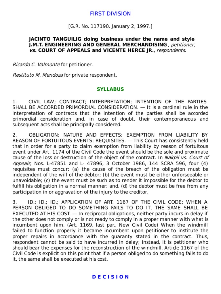 Sometime in April 1987 petitioner Jacinto M. Tanguilig doing business under the