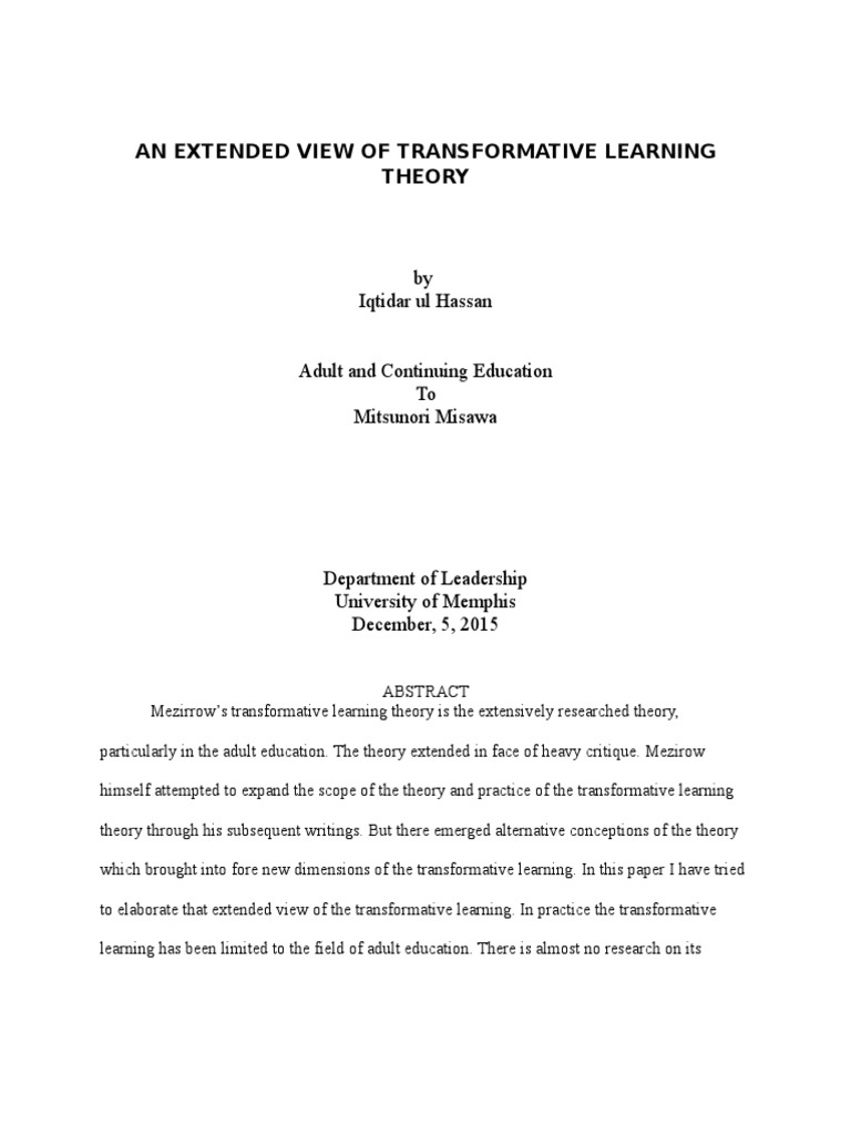 to elaborate that extended view of the transformative learning. In practice the transformative