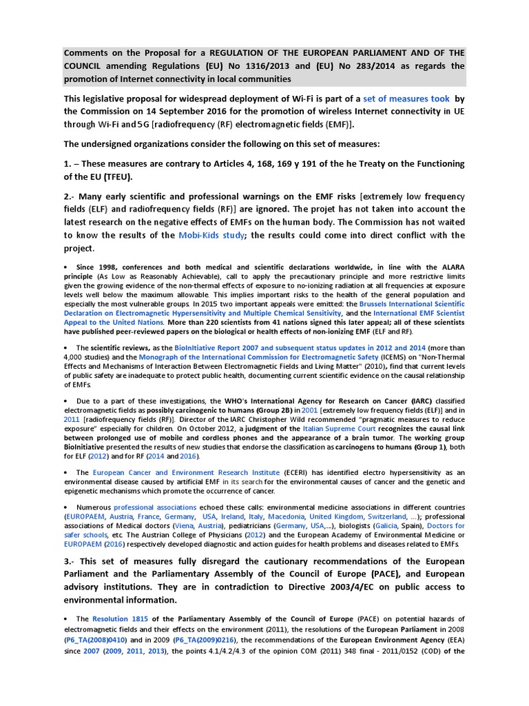 electromagnetic fields and their effects on the environment (2011), the resolutions of the European Parliament in 2008
