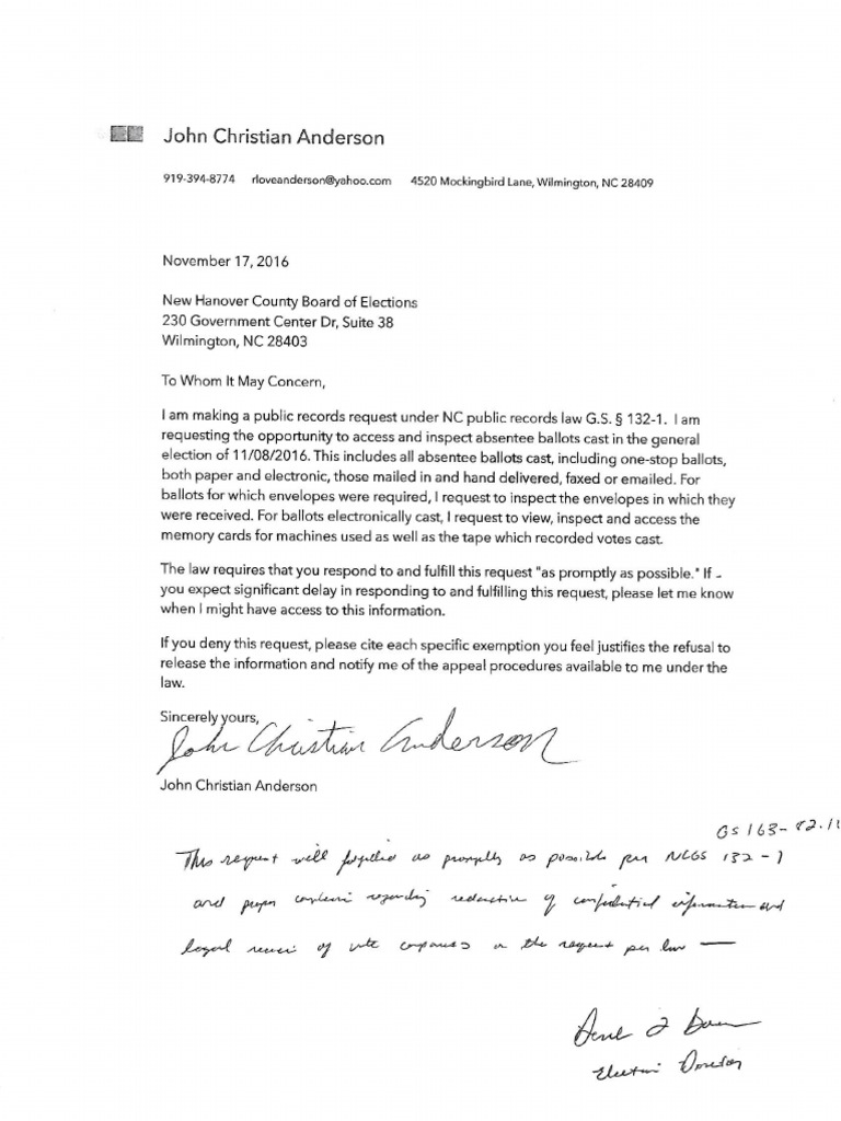 11-17-16 New Hanover North Carolina Records Request - 1 John Anderson