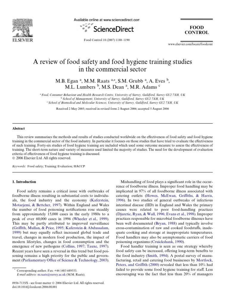 Worsfold, D., & GriYth, C. J. (2003). A survey of food hygiene and safety