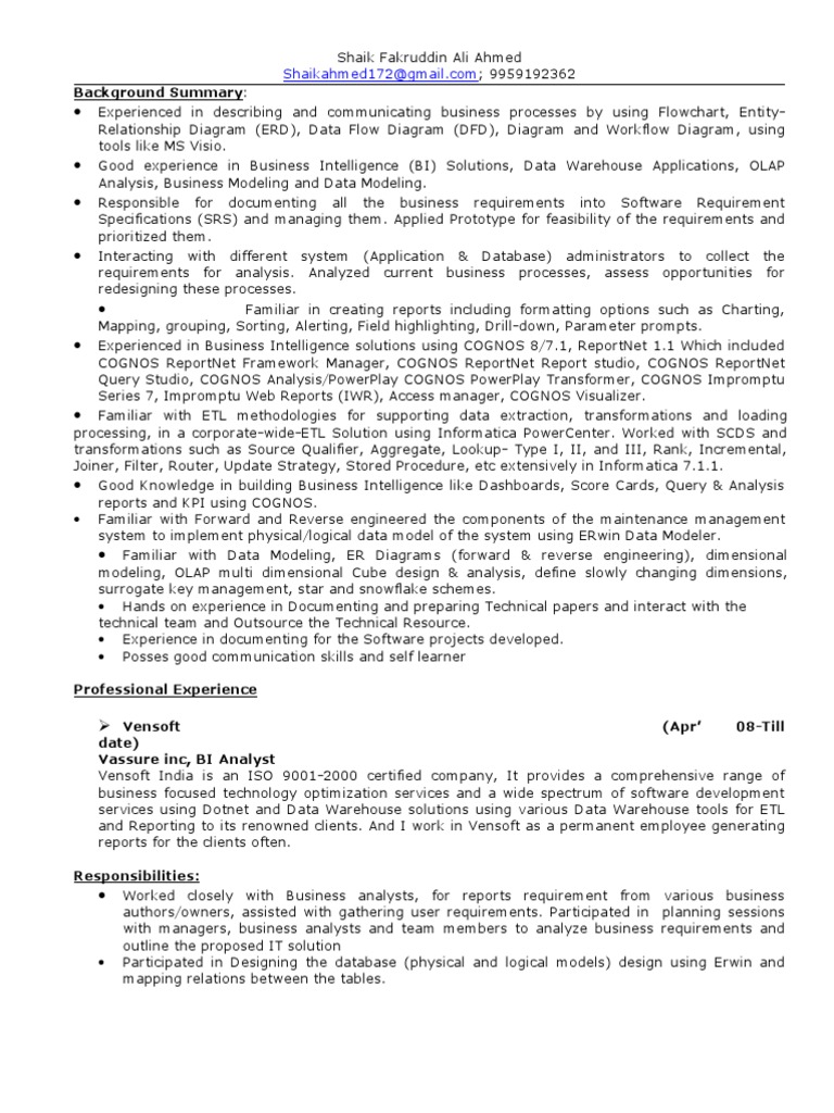 Tools: Oracle 9.i, MS-office, PowerCenter 7.1, Cognos 7.1/ 8, Erwin, windows 2000